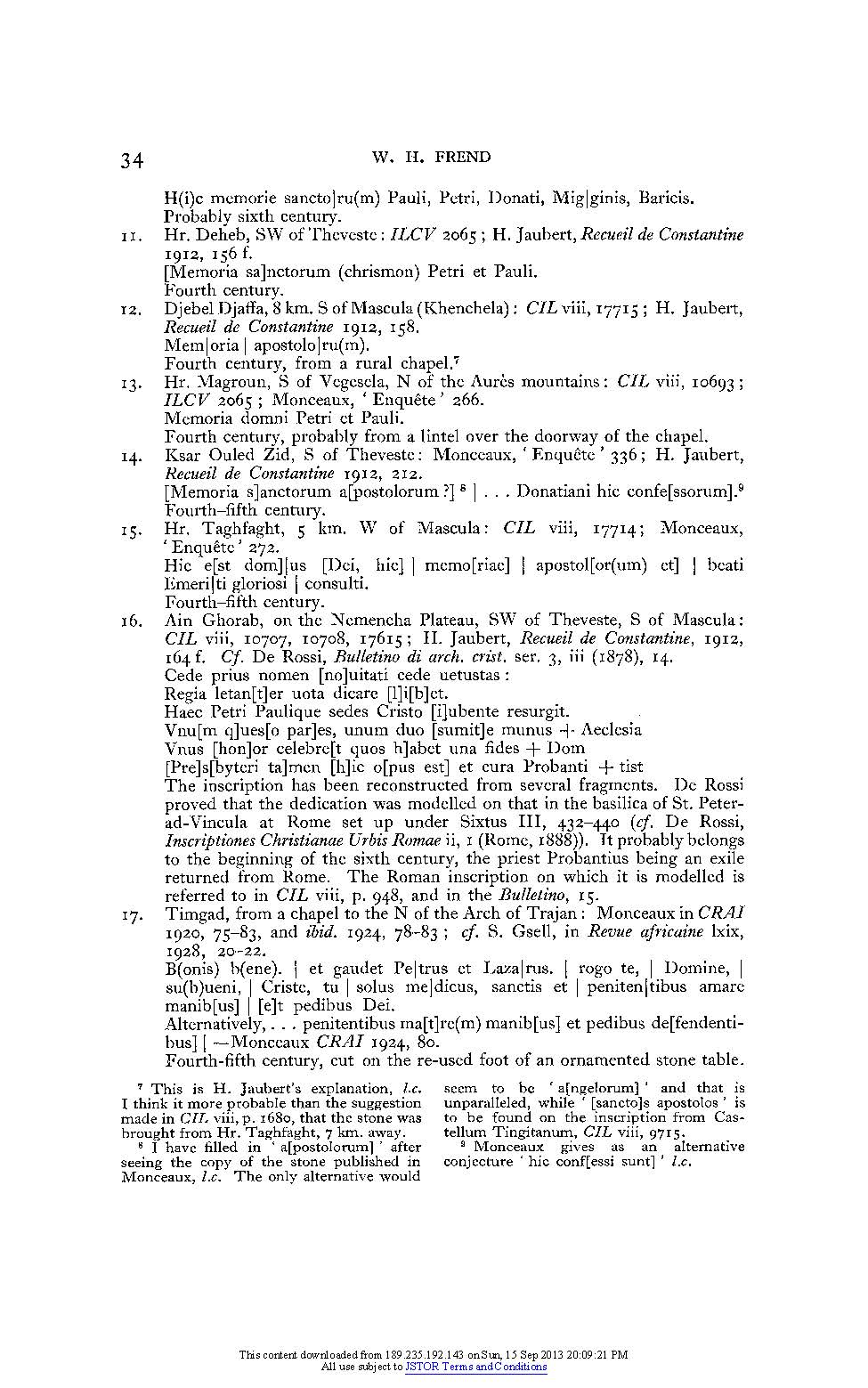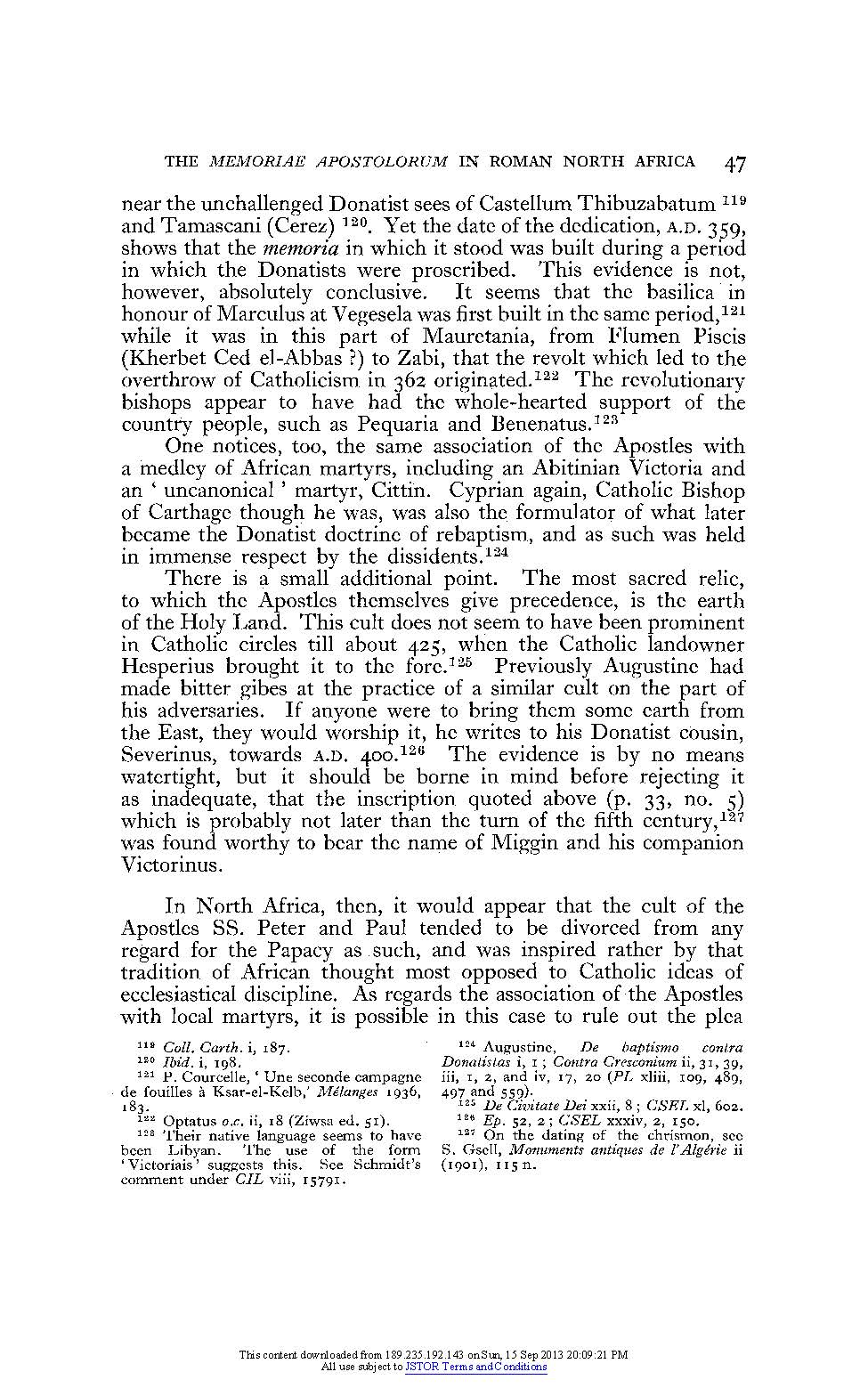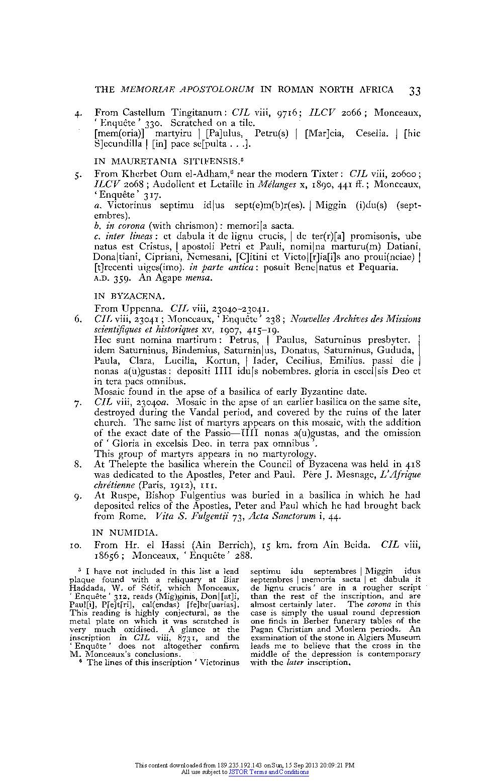 Article. Frend .The Memoriae Apostolorum in Roman North Africa. 1940.