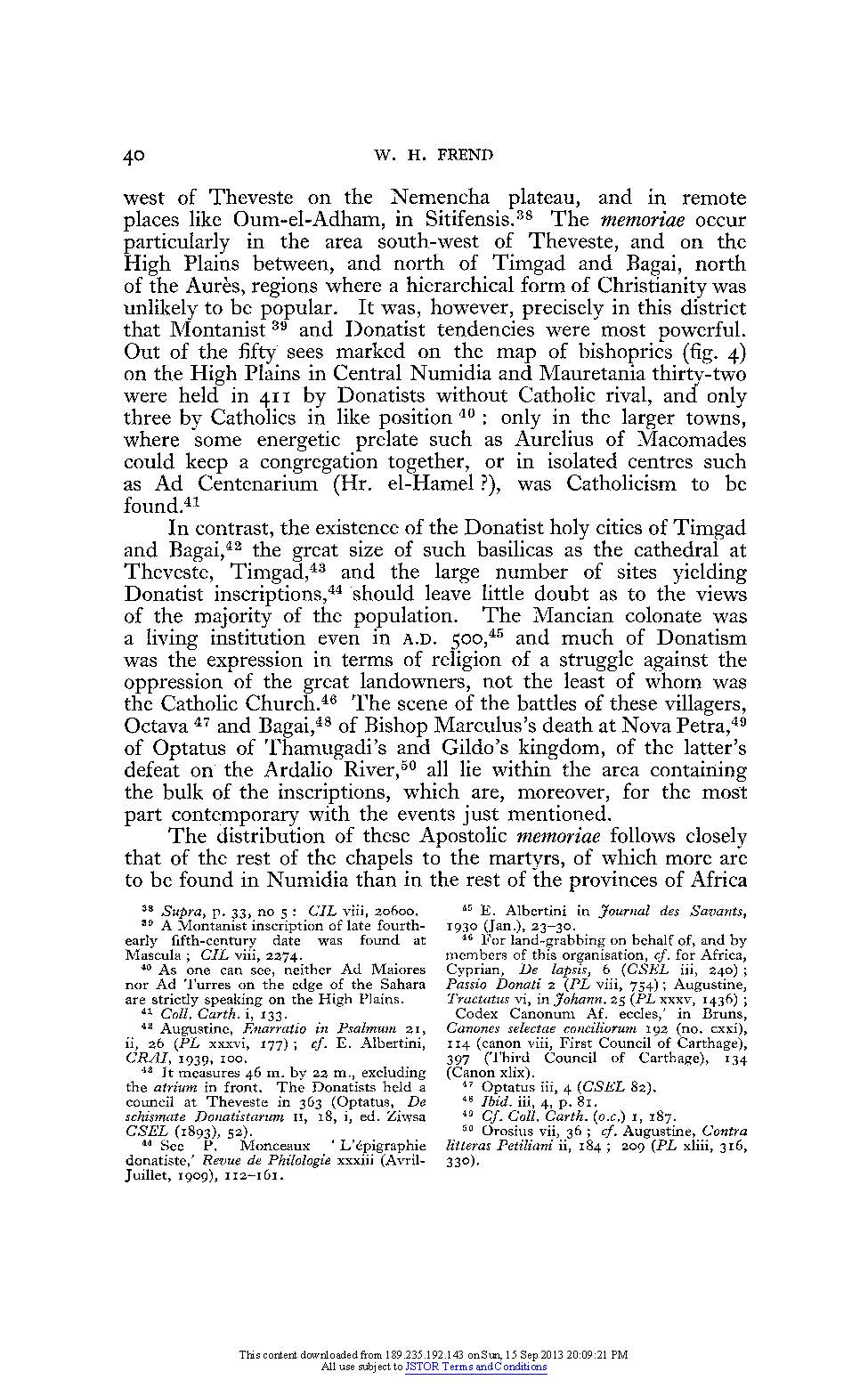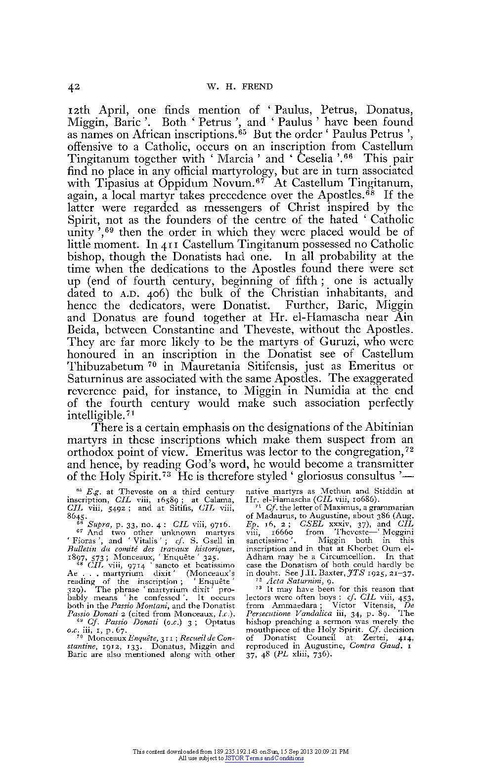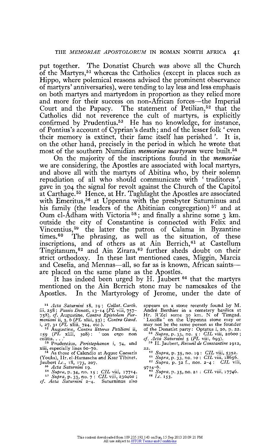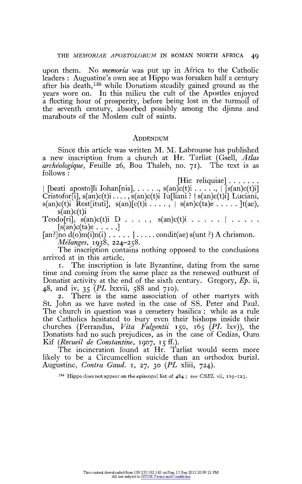 Article. Frend .The Memoriae Apostolorum in Roman North Africa. 1940.